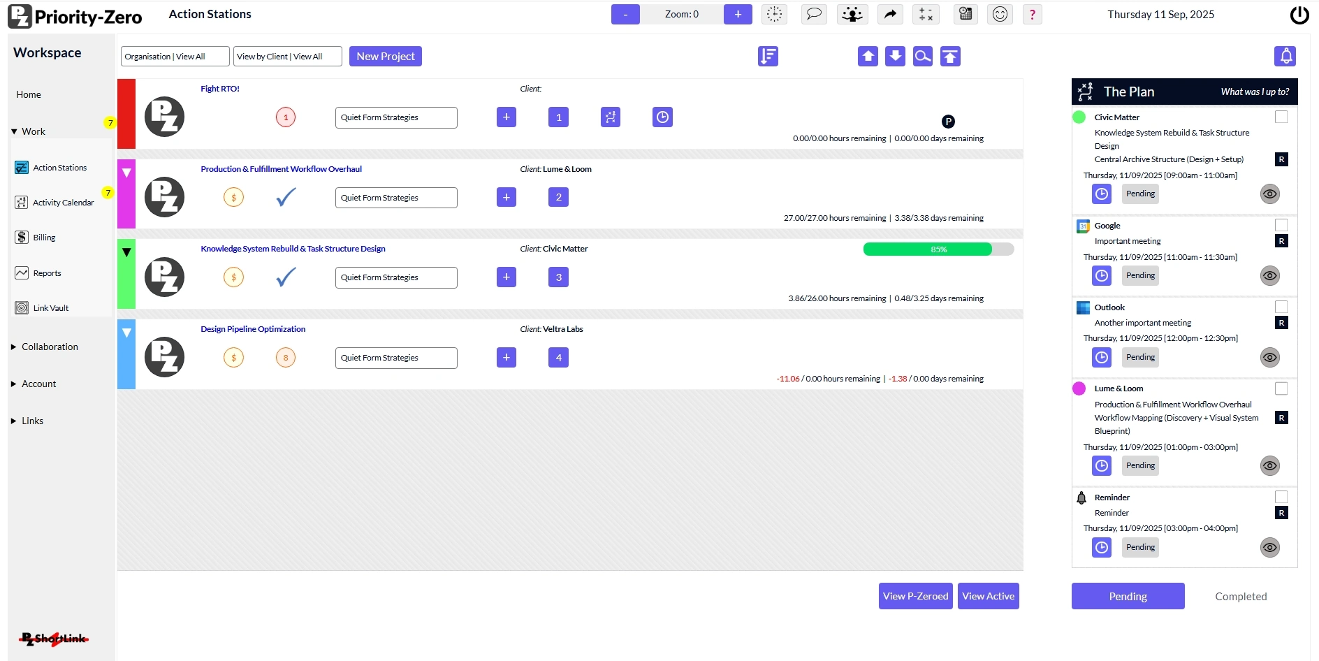 Priority-Zero provides structure not only for business operations but also for client development and progress. It offers a single space for planning, scheduling, collaboration, and tracking. Billing for time-based consultations is simplified, and the platform makes it easy to stay in touch with clients and provide guidance outside of consultation times.
